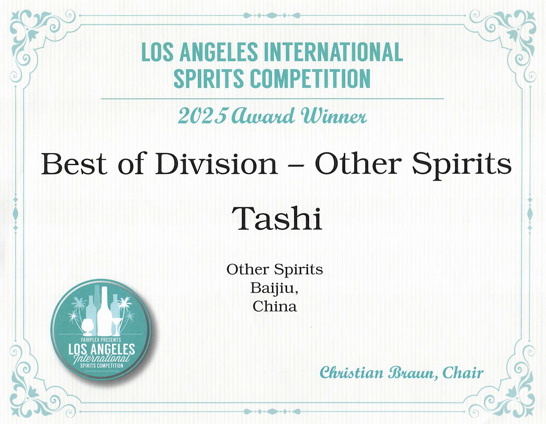 Los Angeles, California — Tashi Baijiu, "The Spirit of Tibet" has once again claimed international acclaim by winning the Best of Division – Other Spirits at the prestigious 2025 Los Angeles International Spirits Competition. This marks the third major win in the past 12 months, with Tashi previously awarded Best of Division, Best White Spirit of the Year, and Best of Class at other leading global competitions.